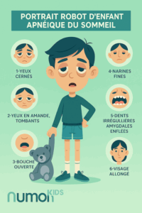 Ronflements, apnées du sommeil, sommeil non réparateur, fatigue, baisse d’attention, troubles du comportement.
